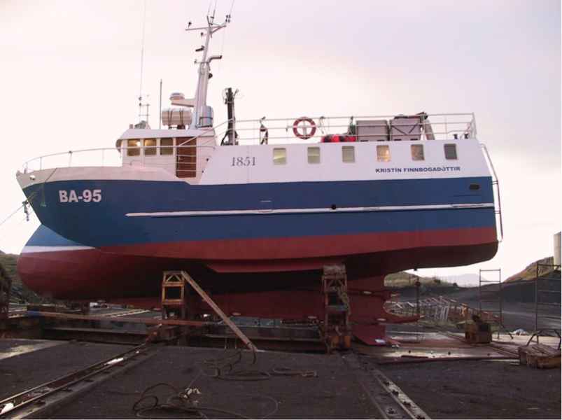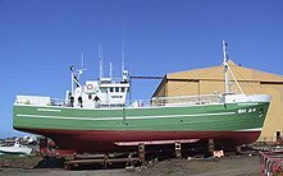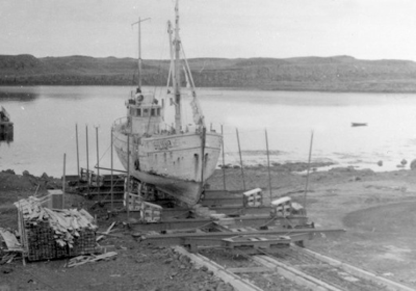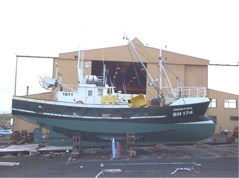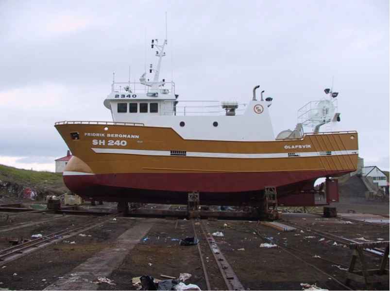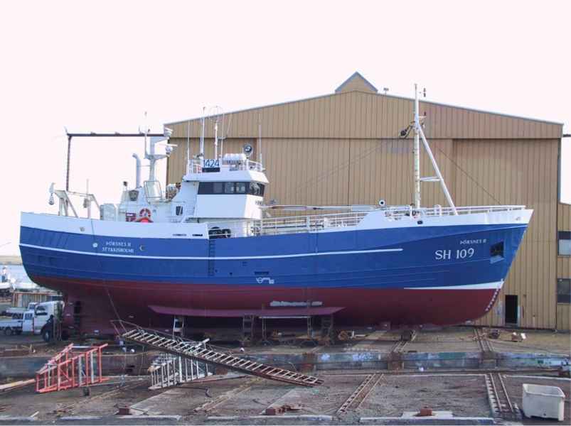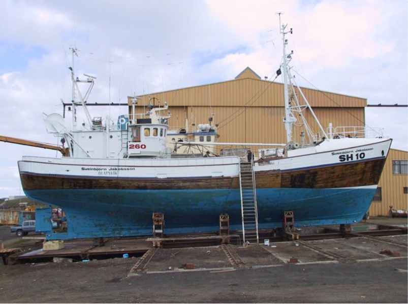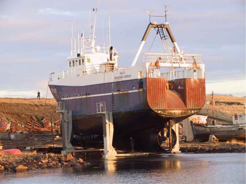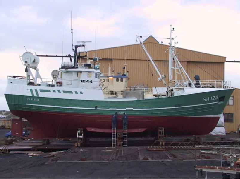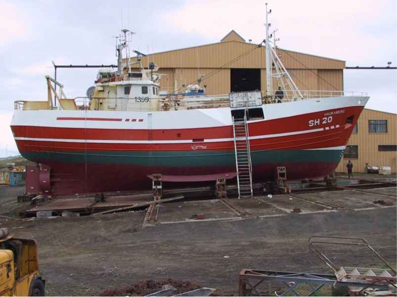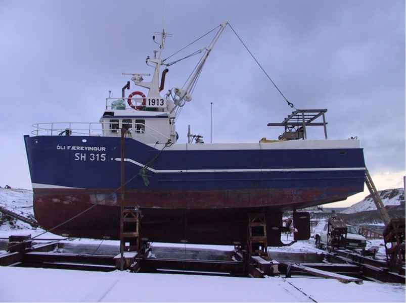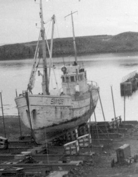 Straumnes SH109, fyrsti báturinn sem tekinn var upp í slipp í nýrri dráttarbraut Skipavíkur árið 1966.