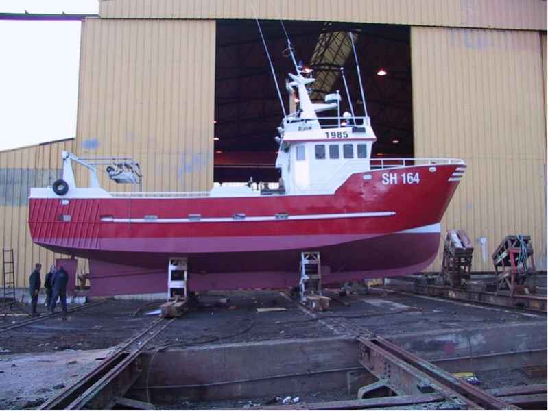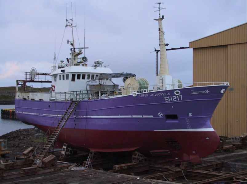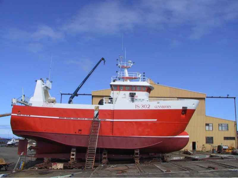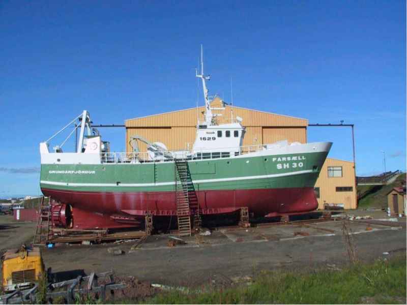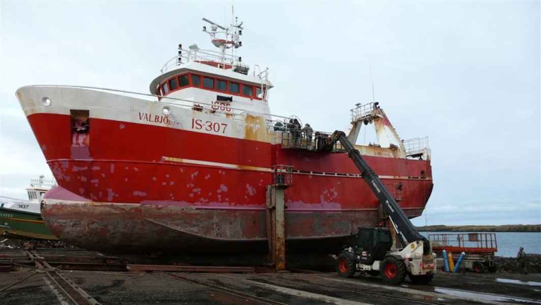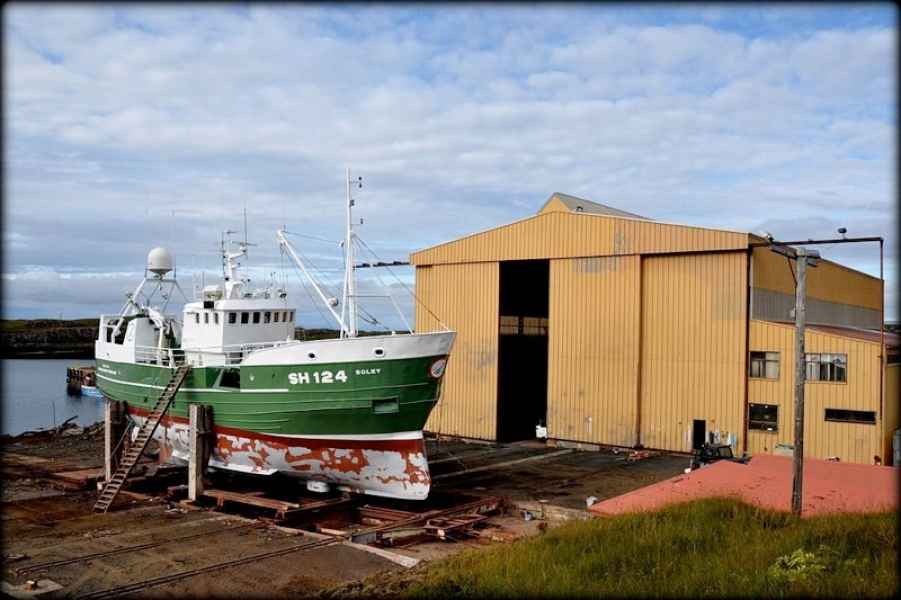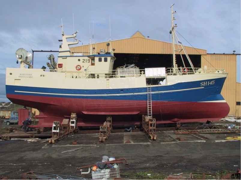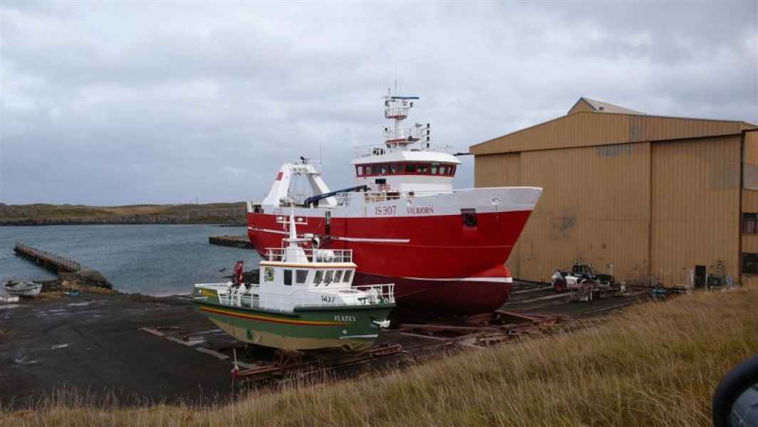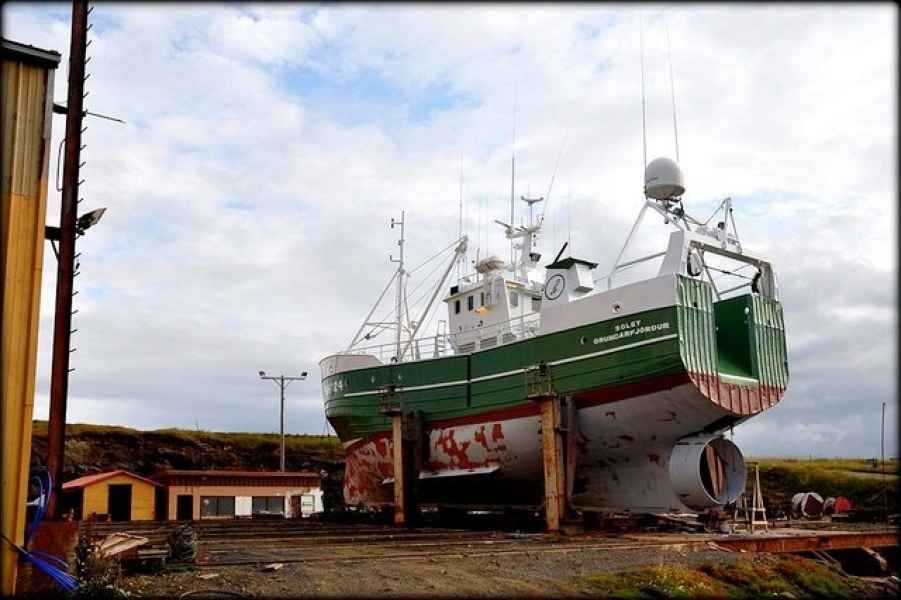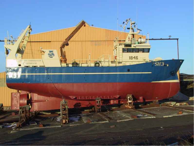 Straumnes SH109, fyrsti báturinn sem tekinn var upp í slipp í nýrri dráttarbraut Skipavíkur árið 1966.