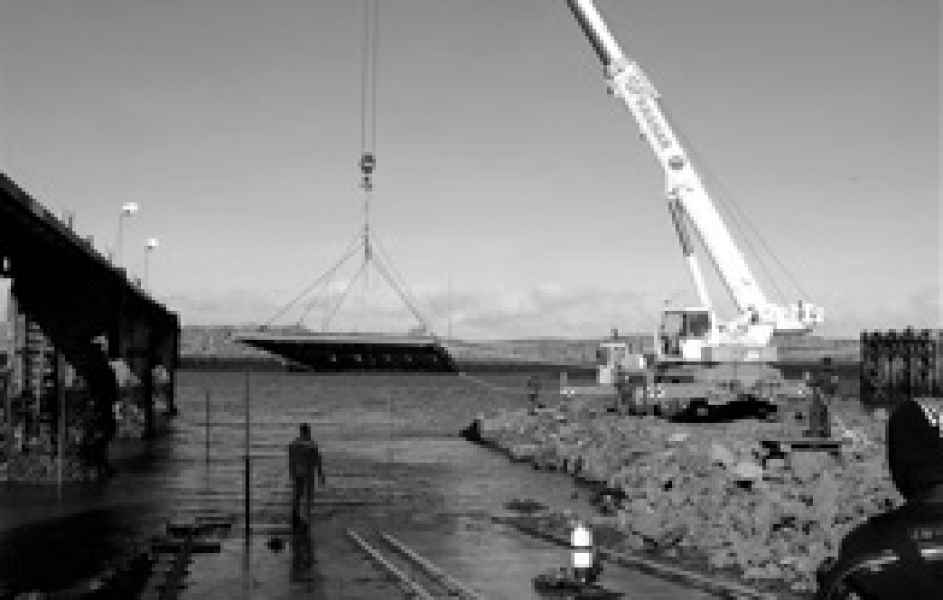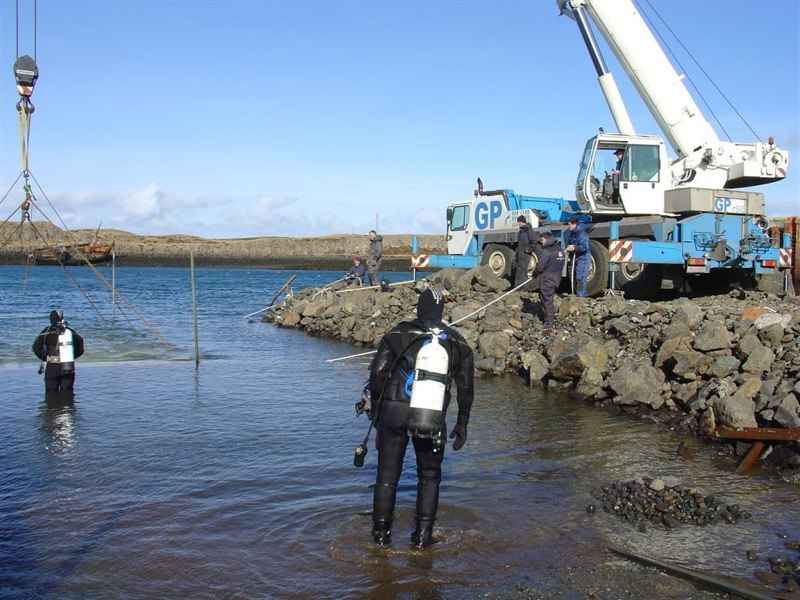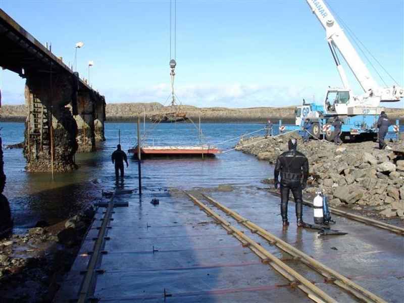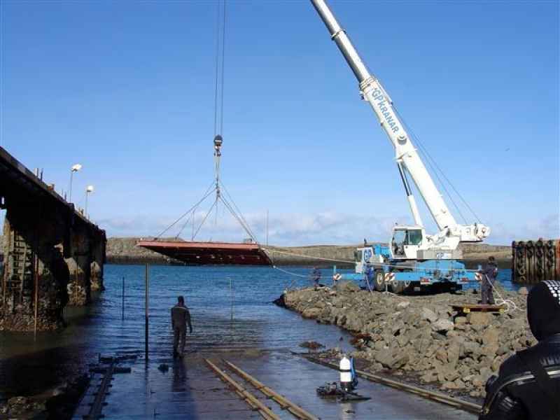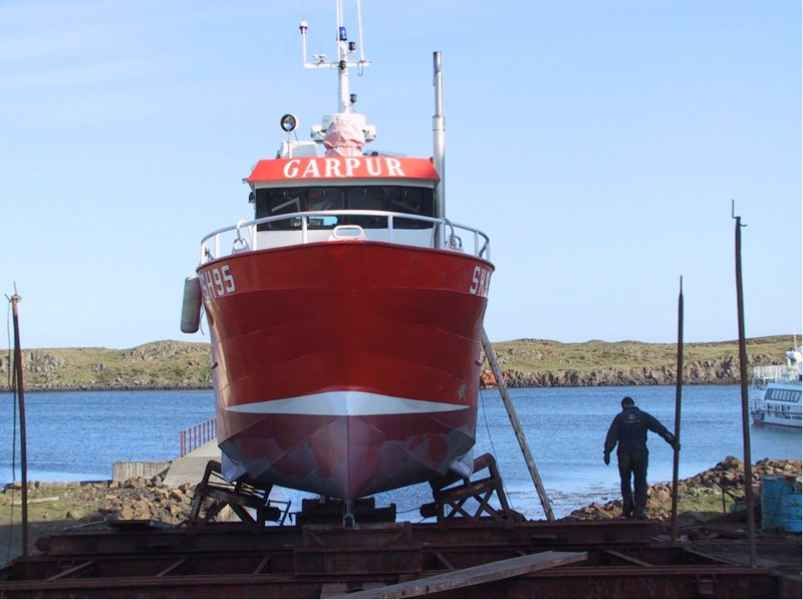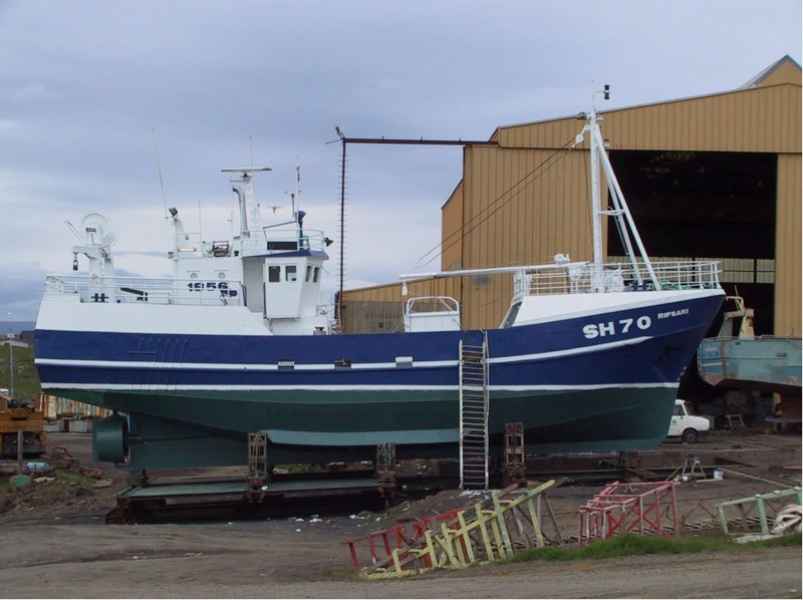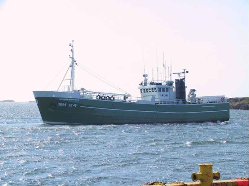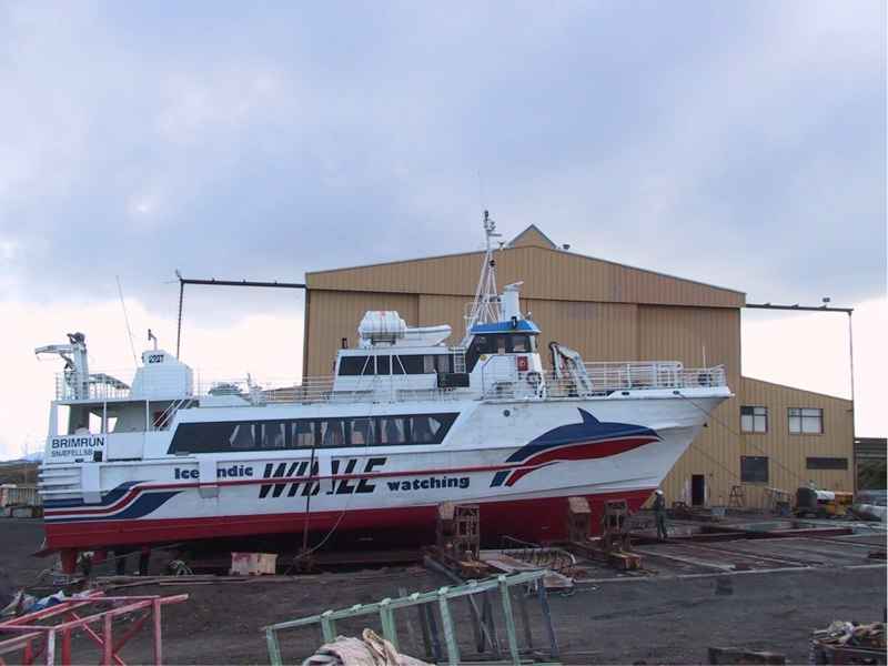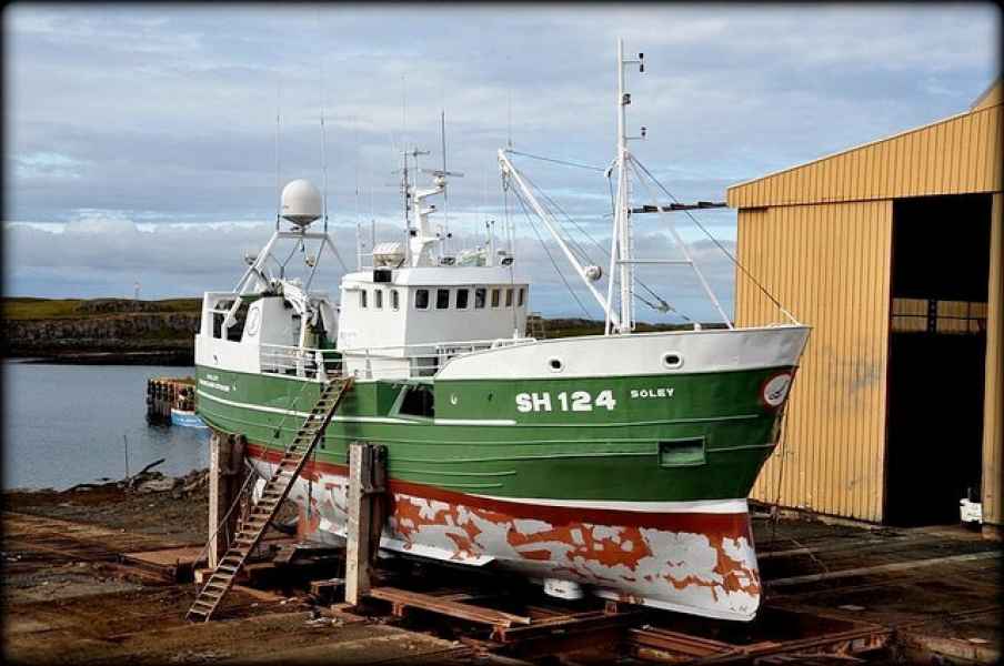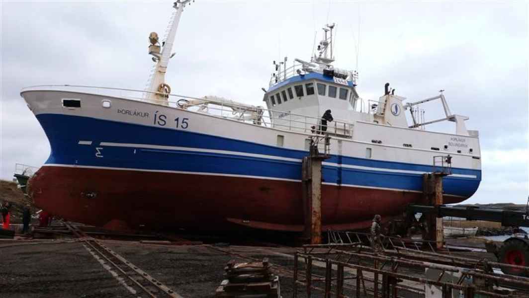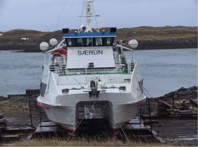 Straumnes SH109, fyrsti báturinn sem tekinn var upp í slipp í nýrri dráttarbraut Skipavíkur árið 1966.